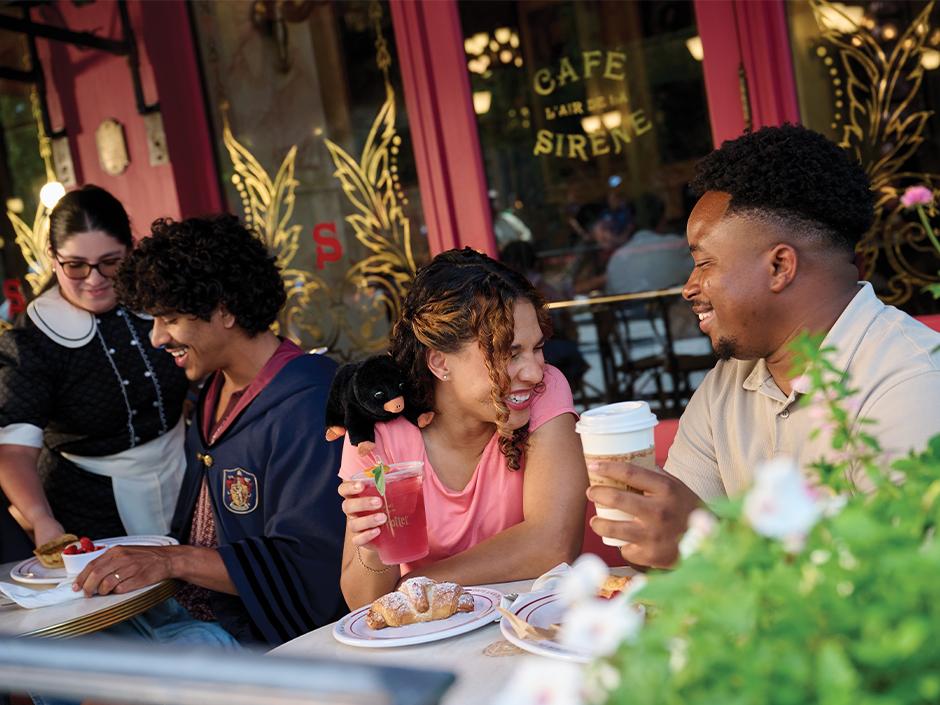 The Wizarding World of Harry Potter continues to be a primary draw, with Café L’air De La Sirène in the Ministry of Magic offering a more refined, upscale atmosphere. This light-filled café specializes in French baked goods and plats du jour, such as Quiche Lorraine and Baguette Ratatouille Provençale. For those 21 and over, the “Gigglewater”—a shimmering elderflower prosecco spritzer—provides a celebratory touch to a midday meal.