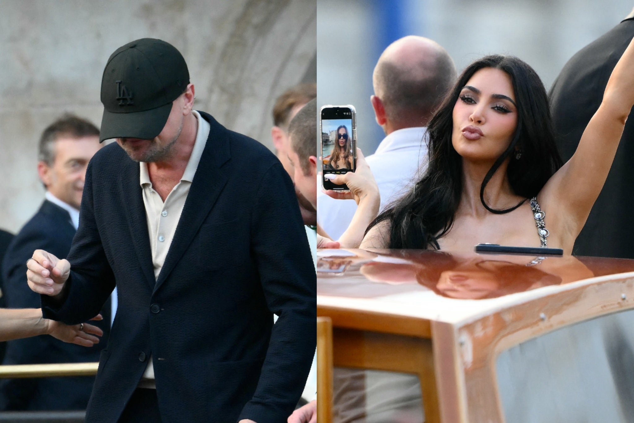 Oscar winner Leonardo DiCaprio attempted a more low-key arrival, donning a Los Angeles Dodgers baseball cap with a navy blue suit. Tom Brady, the former NFL quarterback, was also spotted boarding a water taxi, choosing dark slacks, a white shirt, sunglasses, and a tan jacket.