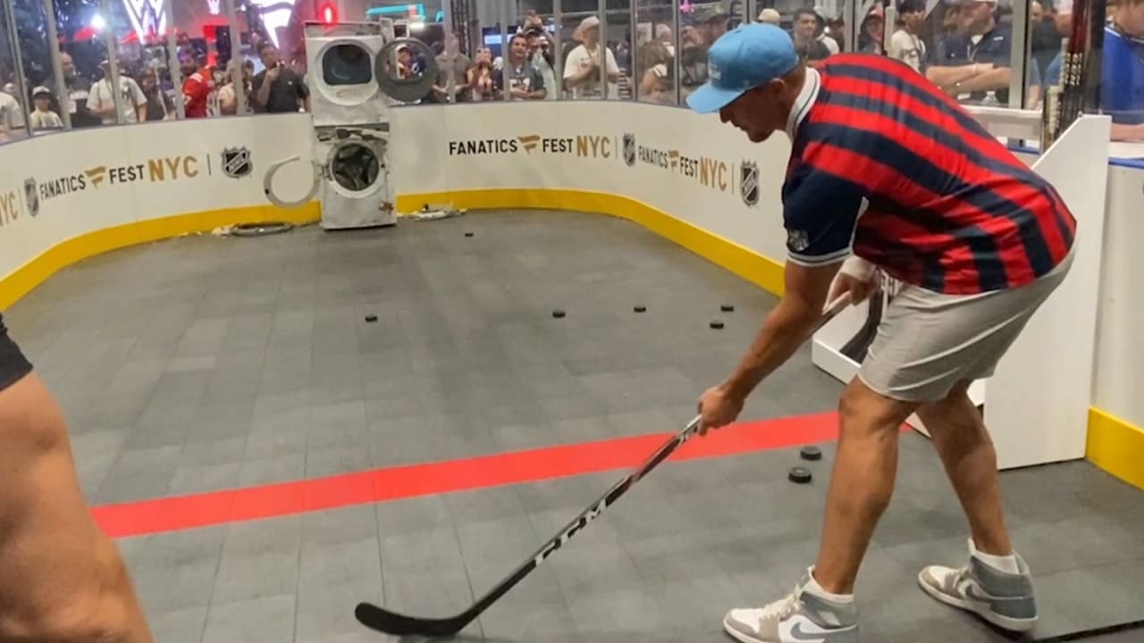 At the NHL booth on Friday, Gronkowski participated in a hockey challenge, taking slapshots at a setup reminiscent of those used by NHL superstar Sidney Crosby during his childhood training. The challenge took place as part of the Fanatics Games, a weekend event featuring 50 celebrities and athletes competing alongside 50 fans in eight different sporting events, including hockey.