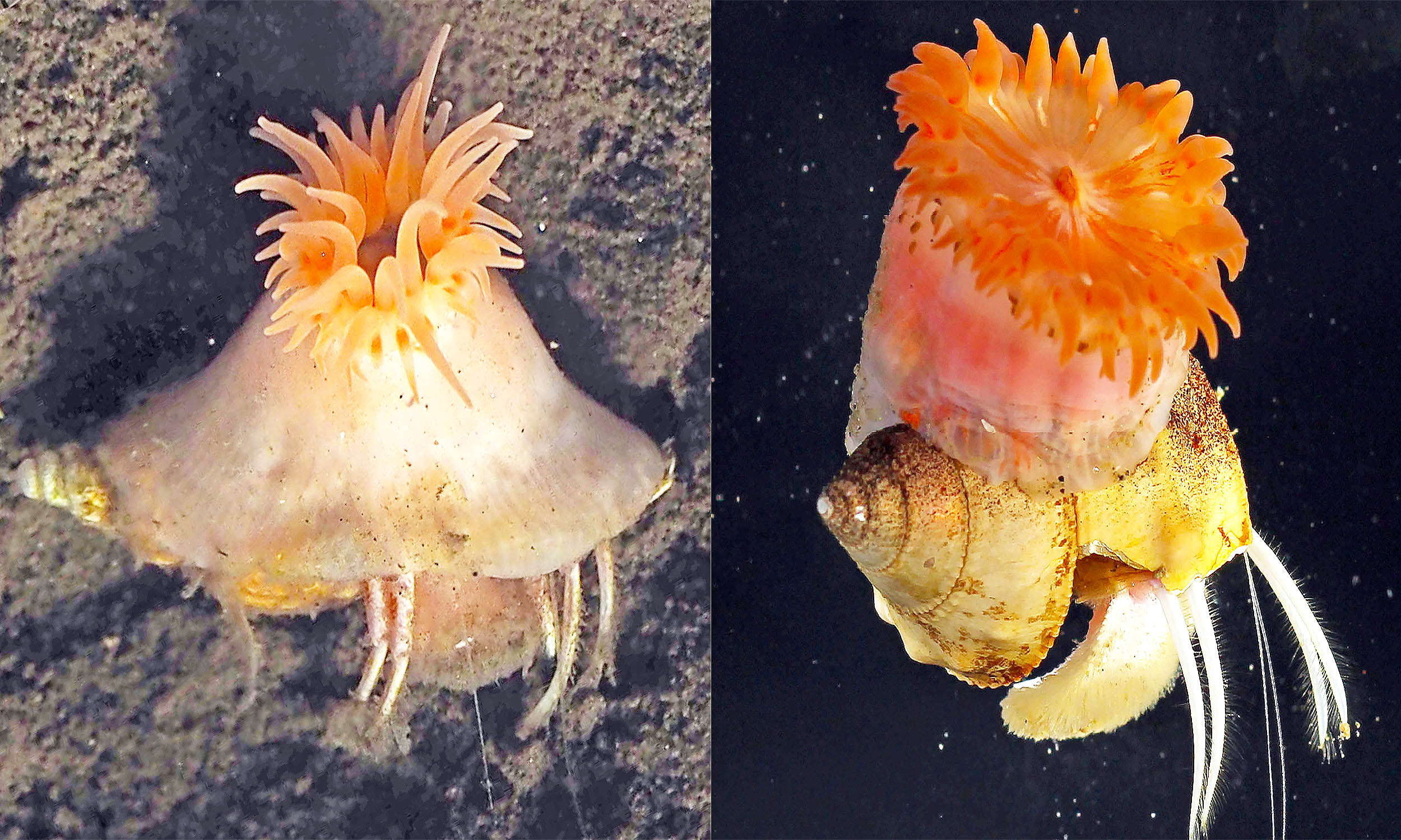 Pale Pink Anemone Builds Shells for Hermit Crab Partners in Deep-Sea Alliance