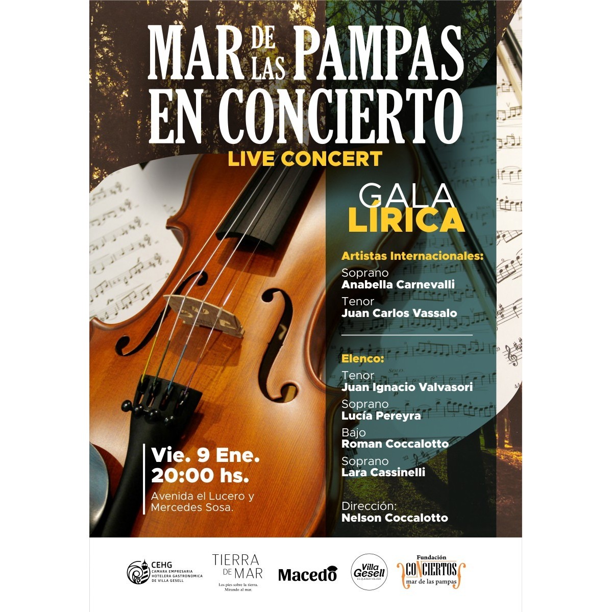Who: The concert will feature renowned soprano Anabella Carnevalli, tenor Juan Carlos Vassallo, sopranos Lucia Pereyra and Lara Cassinelli, tenor Juan Ignacio Valvasori, and bass Roman Coccalotto, all performing under the direction of Maestro Nelson Coccalotto. The event is organized by the Villa Gesell Tourism secretariat with support from the Ministry of Tourism.