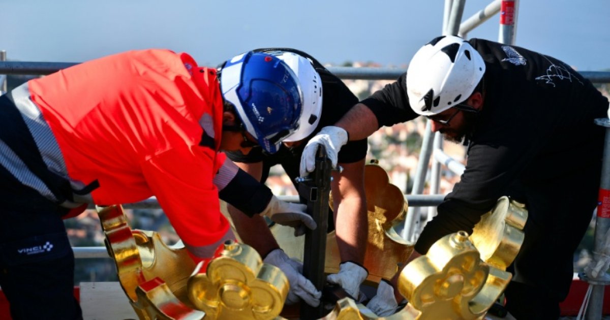A breathtaking aerial operation culminated Friday morning with the return of the newly re-gilded crown to the iconic statue of the Good Mother, a beloved symbol of Marseille, marking the completion of a major restoration project.
