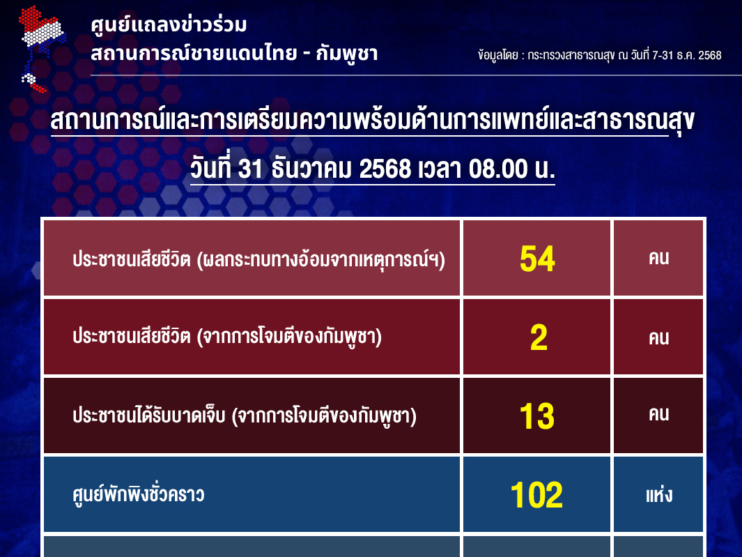 A worsening public health situation is unfolding as of December 31, 2025, with escalating civilian casualties and a strain on medical resources. The Ministry of Public Health released data indicating a significant impact on both direct attack victims and those suffering collateral effects from the ongoing unrest.