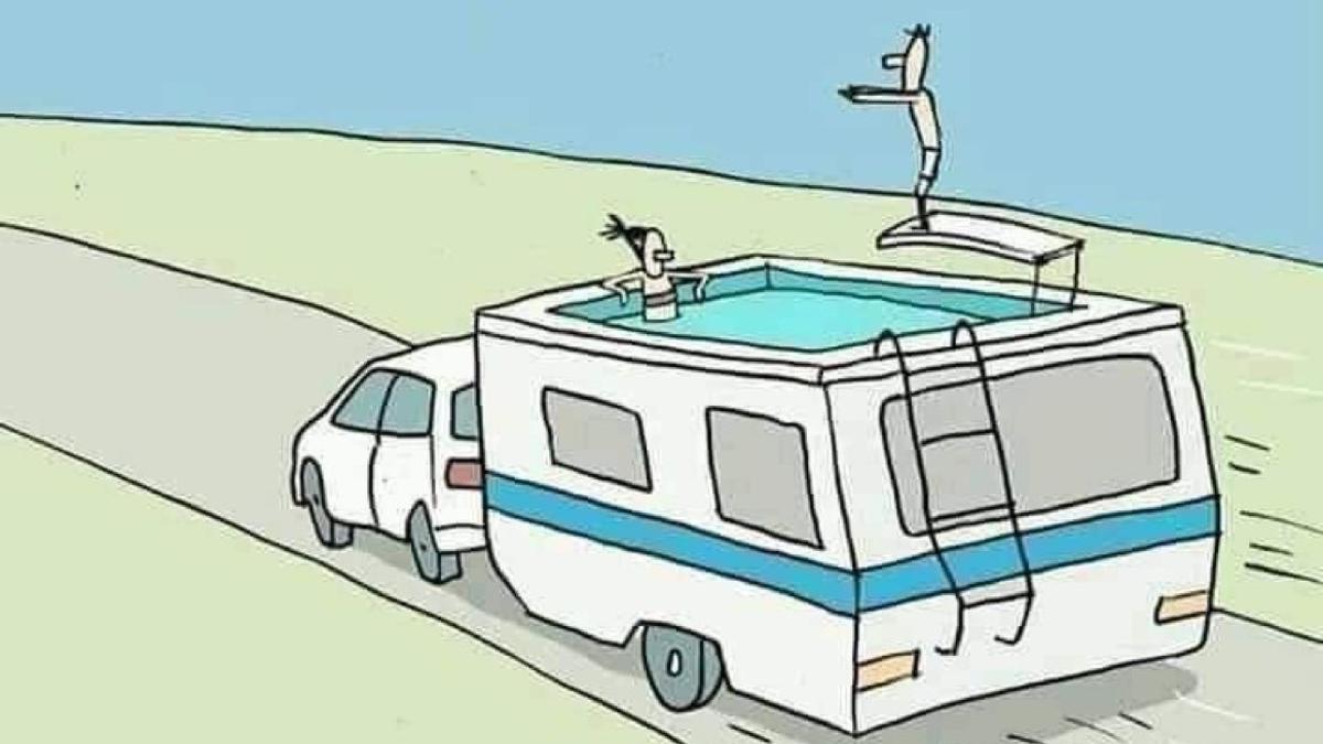 The viral riddle emerged when a user known as “The Figen” posted a captivating image that featured a distinct caravan complete with a swimming pool and a springboard on its roof. Two figures—one man preparing to leap and a woman lounging in the pool—sparked a flurry of theories. The second image presented the aftermath of the man’s jump, leading to speculation about the physics involved.
