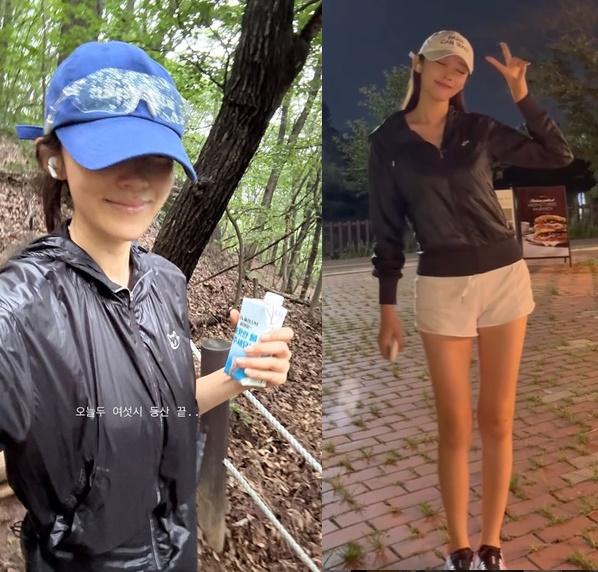 Seo White, the 34-year-old wife of singer Lim Chang-jung, is maintaining a slender physique through consistent exercise, notably climbing. On august 27th, she shared photos on social media showcasing her svelte appearance while hiking. In one post, she captioned a picture from her mountain excursion, “Today’s six o’clock climbing.”